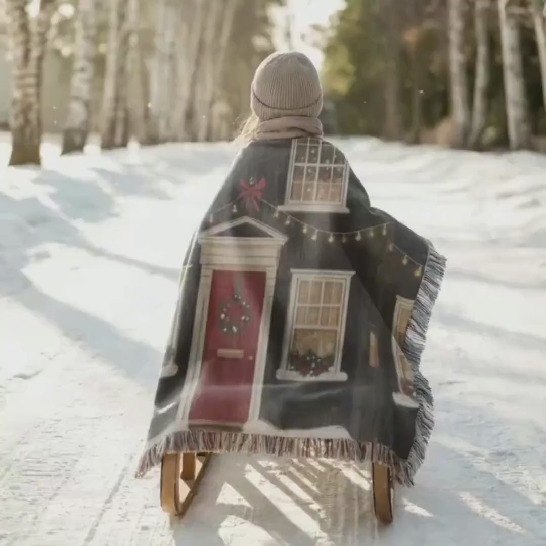 Christmas Throw Blanket – Cozy Woven Cotton Holiday Village Design Blanket