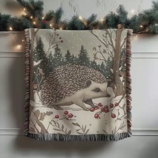 This hedgehog bed blanket offers a charming blend of comfort and festive style, perfect for adding warmth and whimsy to your home during the holiday season. Crafted from 100% cotton, this cozy holiday blanket features a delightful woodland creature decor with colorful fringed edges that brighten any room. Designed as a soft cotton bedding option, it functions beautifully as a lap blanket for sofa use or as a festive bed throw, making it an ideal nature lover gift. Available in three sizes, this handcrafted woven blanket provides both durability and a unique aesthetic that enhances your winter animal blanket collection.