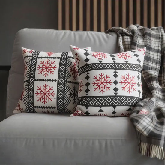 Welcome the beauty of winter into your living space with our exquisite Scandinavian Winter Pillow Cover. Designed to encapsulate the essence of the season, this striking black and red snowflake cushion will effortlessly blend with your winter-themed home decor. Its captivating design brings warmth and coziness to your space, making it the perfect addition for those chilly nights.