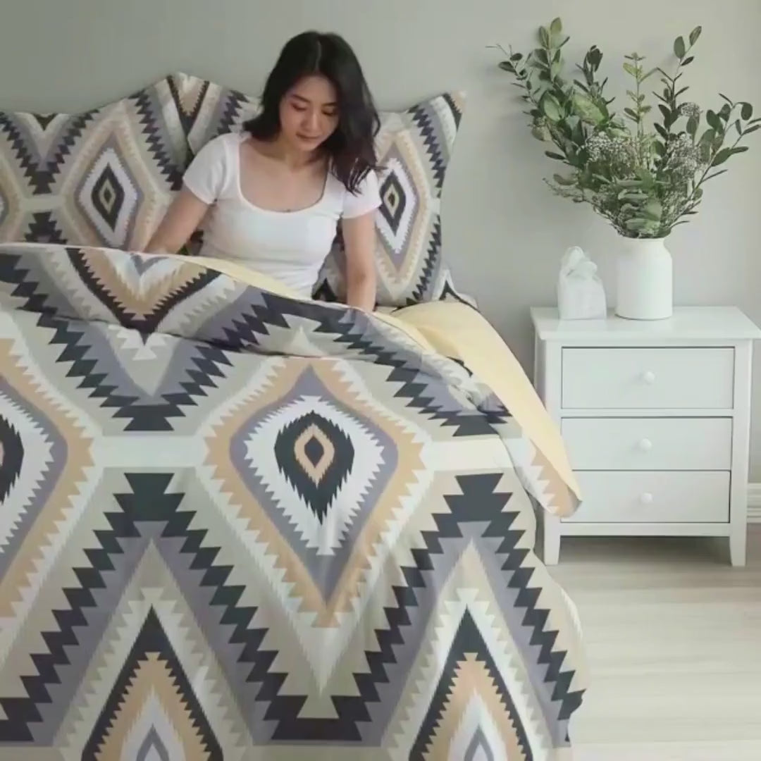 Our Navajo Bedding Set is crafted with exquisite workmanship using advanced printing technology to ensure sharp details and lasting quality. The premium materials combined with the unique geometric duvet cover design bring both fashion and function to your bedroom.