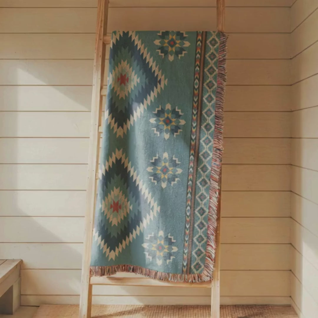 Idéal pour tous ceux qui recherchent une couverture d'extérieur douillette alliant héritage culturel et design pratique, ce plaid à motifs artisanaux est un choix de cadeau attentionné. Déplié comme tapis de pique-nique géométrique ou drapé sur un mobilier de jardin comme une couverture de patio ikat, il transforme n'importe quel espace en un chaleureux refuge du Sud-Ouest.