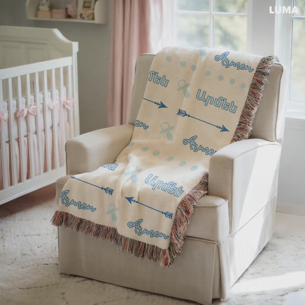 Cette couverture pour nouveau-né garçon est un cadeau arménien très apprécié grâce à sa qualité artisanale et à son charme personnalisé. Elle est non seulement pratique comme couvre-lit, mais aussi comme élément décoratif dans la chambre de bébé. Son tissu en coton respirant régule la température, gardant bébé bien au chaud sans surchauffer.