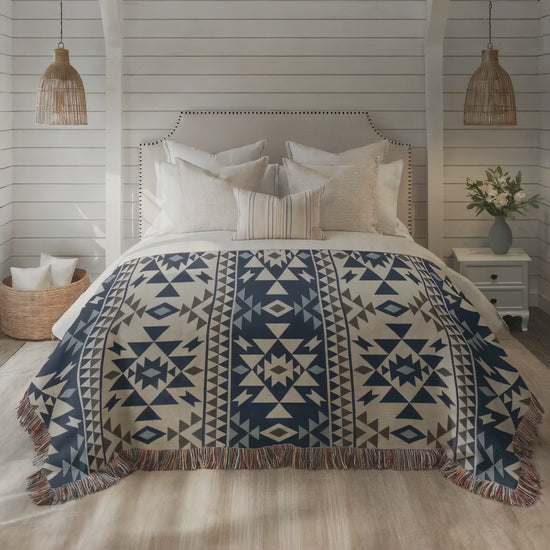 Rehaussez votre espace de vie avec cette couverture aztèque tissée de qualité supérieure qui combine art, confort et fonctionnalité dans une pièce textile unique.