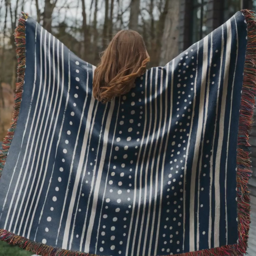 Discover Our Cotton Throw Blanket – Woven Couch Throw With Blue & White Dots Pattern