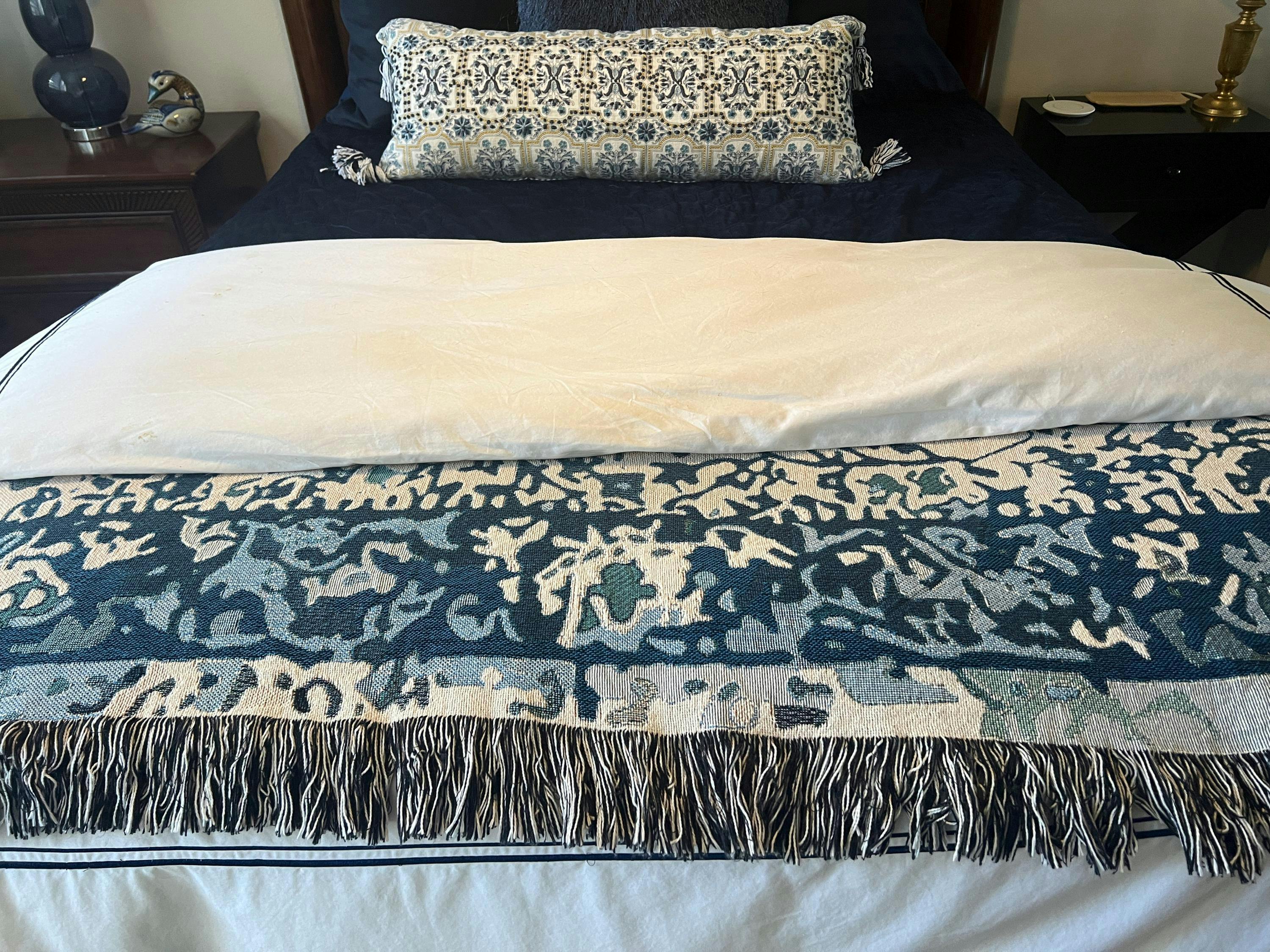 This throw blanket is even more beautiful in person. It’s really nice quality and adds the perfect touch to my bed. I just love it and highly recommend.