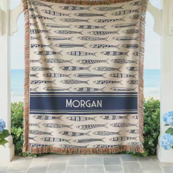 Custom Sardine Blanket | Soft Cotton Woven Throw, Personalized Beach Towel & Coastal Home Decor