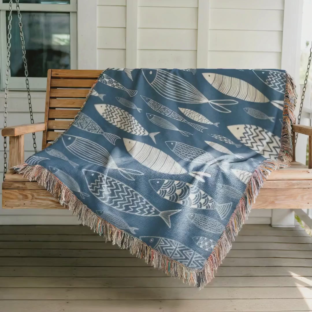 Bring the essence of coastal living into your home with our nautical blanket. Crafted meticulously, this marine woven throw features an enchanting striped fish design that instantly elevates any space. Whether you’re adding a splash of marine charm to your living room or snuggling up on a chilly beach evening, this blanket serves both functionality and style.
