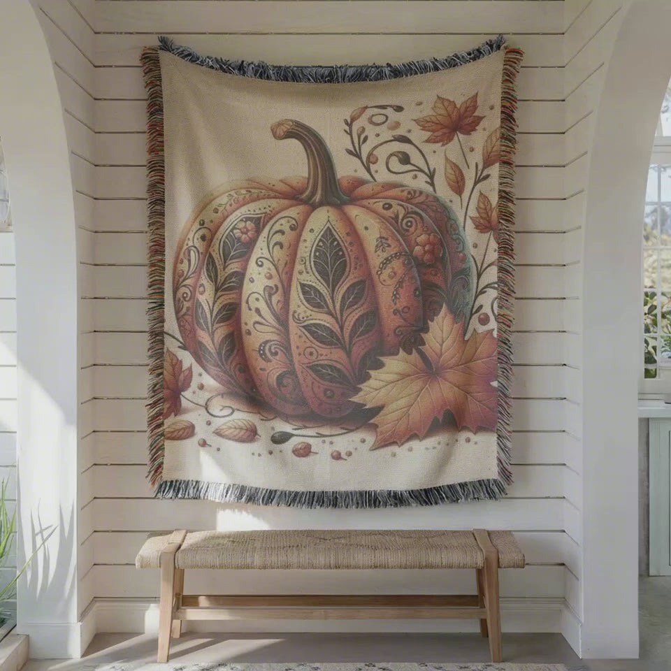 Thanksgiving Throw Tapestry - Pumpkin Wall Art | Cozy Fall Home Decor