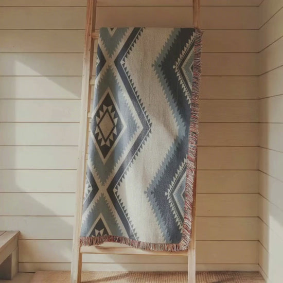 Tribal Woven Blanket | Cozy Cotton Throw Featuring Navajo Geometric Patterns & Boho Chic Design